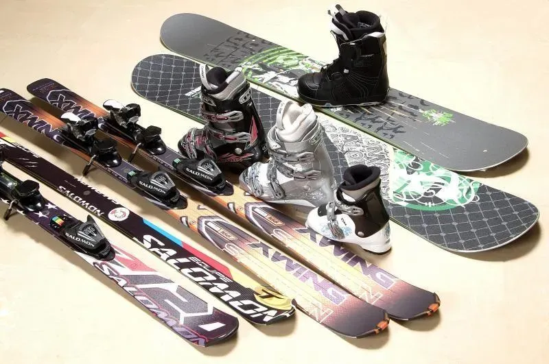 - 滑雪用具:滑雪板、雪衣、雪褲、雪杖、雪靴、手套、護目鏡、安全帽