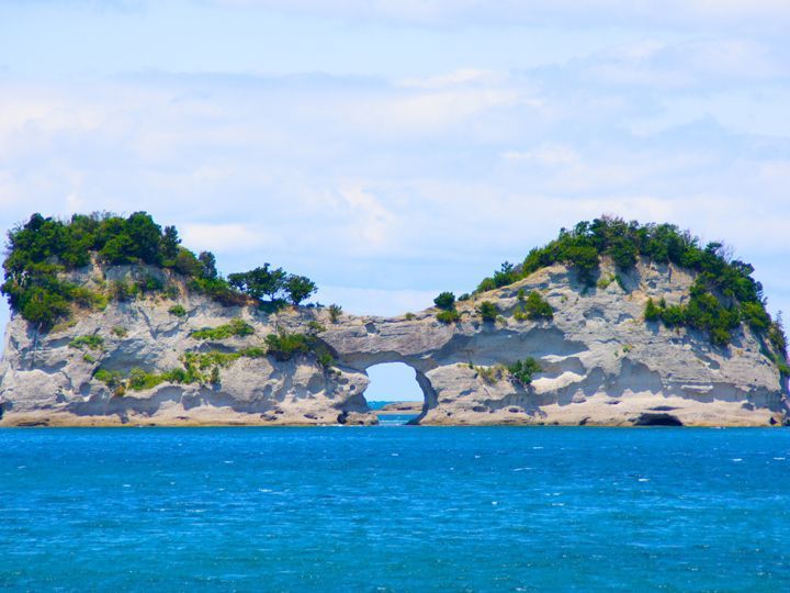 白濱的象徵位於臨海浦海面,東西長35公尺,南北寬130公尺,高25公尺,彷彿像飄浮在海上的一葉小舟。平坦的岩礁中央有一個圓形的海蝕洞故此得名。春秋之季可從海蝕洞觀望日落。