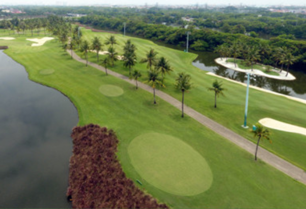 - 位於西雅加達Lippo Karawaci,由英國設計師Desmond Muirhead設計,以其獨特的設計和具有挑戰性的球道而聞名,例如第4洞的島嶼球道,考驗高爾夫球手使用長鐵桿或混合桿的準確性和信心;第5洞的島嶼果嶺,四周環繞著同心圓,不僅有水,還有沙子為球友帶來前所未有的挑戰。